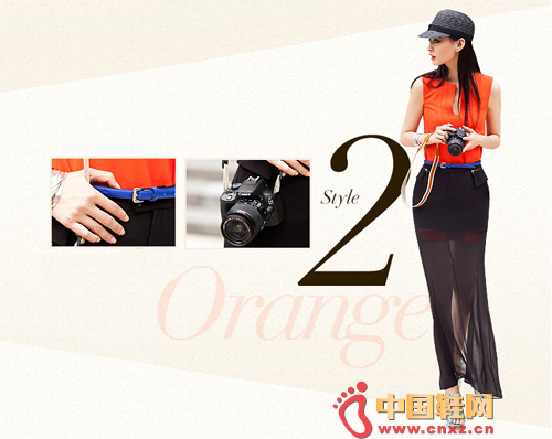 橘色雪纺上衣与黑色版透视长裙的撞色搭配是今年潮女的标志,散发出街头女郎的强大气场。