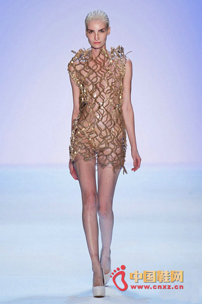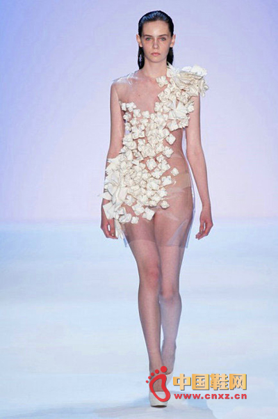 中国鞋网7月10日讯,近日,柏林时装周 Irene Luft秀场出现PVC透明材质上衣,模特全裸真空,胸前两点清晰可见。不仅如此,巴黎高定时装周的各个秀场基本都有透视、透明、中空露胸的例子。时装周秀场裸露并不少见,但是要露出美感和层次,却是一门高深的学问。下面我们就一起盘点下近期秀场中“露”出水平的例子。
