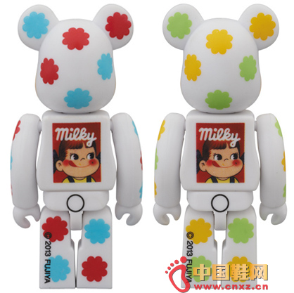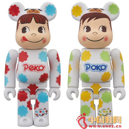 中国鞋网7月31日讯,成立于1910年的日本甜食品牌 不二家,相信很多朋友都会喜欢他家的两位代言人 - PEKO & POKO。是其日本牛奶糖标志上的形象,造型乖巧,深受亚州年轻人喜爱。BE@RBRICK 这次就一口气推出两位主角的熊仔套装,将PEKO & POKO 两人穿上老牌经典牛奶糖(MILKY)的包装纸,身穿超可爱粉红和蓝配色的PEKO、黄绿配色的POKO,头顶还有熊头图样,以及背上印有经典的红色包装,真是萌爆了。