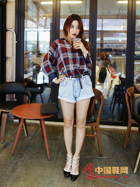 必备的经典款,红蓝格纹的处理,休闲的风格,宽松的版型,上身感超赞,搭配上高腰的宽松牛仔短裤,演绎出中性的魅力。