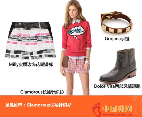适合秋季的红色针织衫既活泼又休闲,适合很多生活场景。鲜活的红色圆领针织衫,里面可以搭配浅蓝色或者蕾丝领的衬衫,更加减龄。秋老虎的热度也可以搭配一条短裤,上长下短的搭配非常时髦,短裤可以选择一条花呢材质的,颜色亮丽并富有几何感。皮质边饰设计,融入秋季皮革潮流。金属色和荧光粉红线编织而成,搭配宽松针织衫和随性短靴非常适合,打造随性时尚的造型。亦可搭配短款大衣和高跟鞋,打造更为摩登现代的造型。短靴的选择可以搭配一款西部风情的细长款式,时尚柔美,刺绣和叠跟带来经典感。手链选择一条金字塔铆钉皮革手链带来经典朋克风。