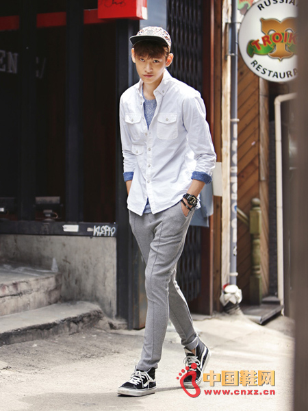 休闲风格的,简洁自然,三个口袋的配置不限单调,内搭简约的T恤,下搭简单潇洒的长裤,即简约又不失个性。