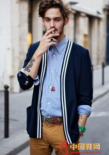 海军条纹开衫搭配卡其长裤,袖扣随意挽起,复古戒指碰撞腕间草绿运动表,各种元素轻松融合。吐息间,只要眼神邪乎一些,就绝对吸引目光了!