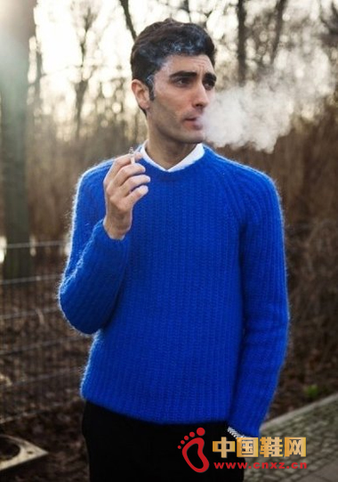 荧光蓝的毛衣绝对是金秋的必备单品,略显沉闷的秋色中,轻快的基调已经搭建,黑白的内搭与下身让重点突显。而指尖的烟平衡了这相比自身略显青涩的搭配方案,巧妙添上一抹沉稳。
