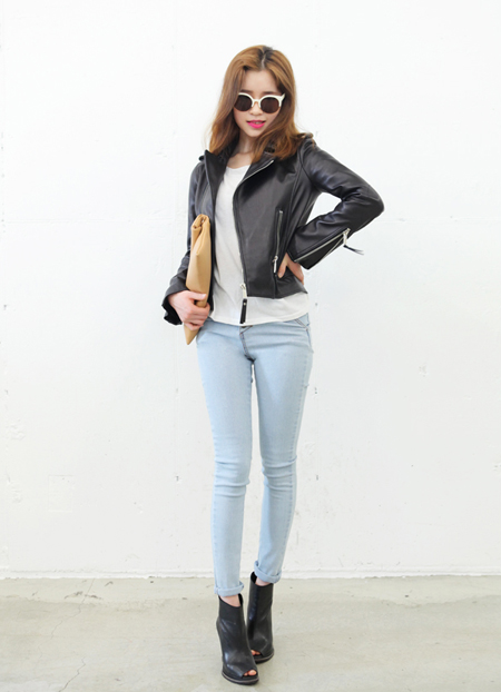 中国鞋网9月30日讯,“土肥圆”一词来源于网络,用来形容相貌平淡、身材臃肿、形象不佳的女生。想要逆转“土肥圆”的形象那么一件黑色的机车皮衣便是显瘦必备利器。在秋季时节快为自己备上一件吧,打造出干练、大气、性感的女性魅力形象。下面一起来解析一下机车皮衣的秋季穿搭法。