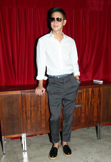 进来练得一身肌肉的张家辉也不惧怕白衬衫,更是以西服裤子亮相,但是墨镜和鞋子都让他摆脱了严肃的担忧,裤子的九分设计也颇有心机。
