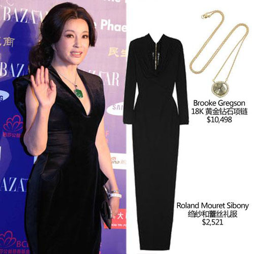 第11届芭莎明星慈善夜红毯刘晓庆亮相。她身穿黑色丝绒深V礼裙,手拿缎面水钻手包,出场气势十足。老牌女星在礼服的选择上稍显保守,黑色长款礼服永远都不会出错,不管是扮嫩也好,突出气场也好都是非常好的选择,而深V的款式就能够看出不老女神的抢镜心机,不过刘晓庆胸前佩戴的枕形切割大块翡翠与深V同样抢眼,岁月的沉淀让女人更有种独特的魅力,佩戴翡翠玉石更能相得益彰。(合作媒体:)
