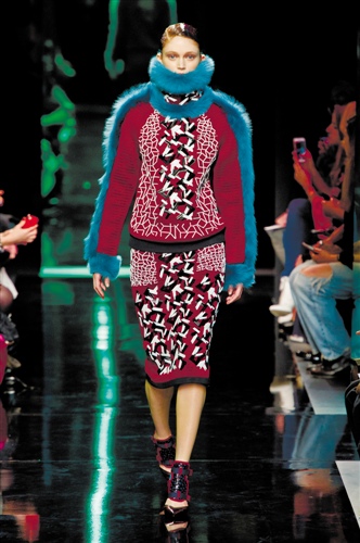 告别赤裸裸的性感,转战伦敦的Tom Ford走起了内敛路线,丝绒长衫和中裙,没有了紧身连衣裙,没有了金色。Tom Ford设计了有史以来最保守的一个系列,保守到连头颈也要遮掩起来,更不用说性感的小腿。更令人诧异的是红色丝绒蛋糕裙这样属于18世纪的产物居然也出场了,老气横生的还有豹纹外套和白色套装。幸好有标有61号的红色珠片字母连衣裙和虎纹染色貂皮大衣压阵,才能挽回Tom Ford这块金字招牌。