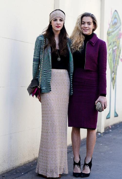 意大利版《Vogue》时装编辑 Giovanna Battaglia与日本版《Vogue》创意总监 Anna Dello Russo,长裙的优雅碰撞斗篷的霸气。
