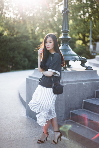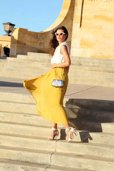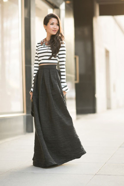 中国鞋网5月6日讯,如果你对自己的腿部没自信,今年不妨试试优雅的大摆裙。巧妙掩盖住你不完美的腿型,只在小腿接近脚踝处留出一点点的裸露余地,让你完美的展现出夏日最优姿态。以下这些街拍达人的示范,用简约和设计感做对比,或者上身活力四射,下身淑女优雅;或者上身简洁大方,下身百般心计,带给你今夏最红最简单的穿搭造型。 (合作媒体: )