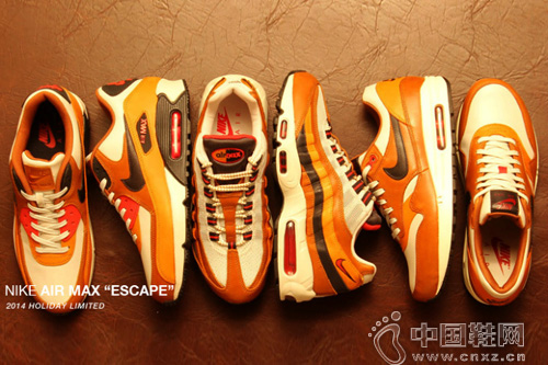中国鞋网11月17日讯,1987 年从乔治·蓬皮杜中心 “Inside Out” 建筑设计取得灵感诞生的元老 Air Max 1 、1990 年搭载更成熟可视气垫的 Air Max 90 以及 1995 年引发大热明星效应的 Air Max 95 ,绝对是 Nike 旗下复古跑鞋的王牌三剑客,各自拥有巨大数量的死忠 Fans 。而此回三位老大齐聚一堂,为 2014 holiday 释出 “Escape” 别注套装系列。以秋冬季常用的棕褐色皮革结合白色网面构成主体,结合红色调的可视气垫,更加突出沉稳的复古运动感之余,也带出了 Nike ACG 支线的户外质感。复古跑鞋控绝对不能错过,马上 Click 入以下网站入手!(合作媒体: )