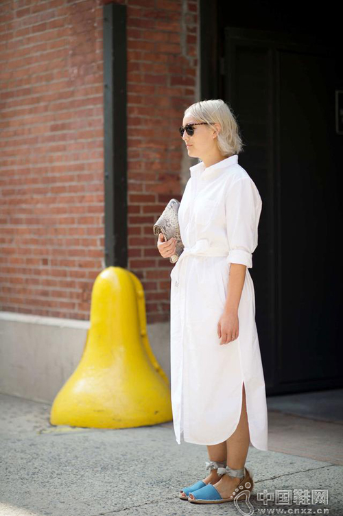 她最拿手的就是不按常理出牌,像这样全白的搭配,可能最好的搭配就是一双Nike blazers。