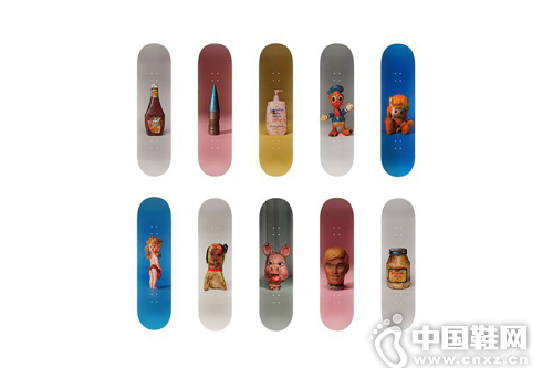 中国鞋网3月11日讯,来自比利时的 The Skateroom 是一个常与艺术家进行联名的非盈利性滑板品牌,近日便找来了洛杉矶艺术家 Paul McCarthy 展开合作,推出 11 块滑板,均以 McCarthy 的艺术作品系列「PROPO」作为灵感进行设计,当中包括了面具,瓶子玩偶,调味料酱汁以及沐浴乳等。当前 10 块滑板全部出售之后,第 11 块滑板将会出现;而这一切所获得的收益将会全部募捐给 NGO Skateistan 国际组织,希望能够在南非建立一座滑板学校,帮助当地的贫困儿童。该系列的滑板每款仅限量 250 块, 现可经由 MoMa 或 colette 购得,售价均为 $350 美元。(合作媒体: )