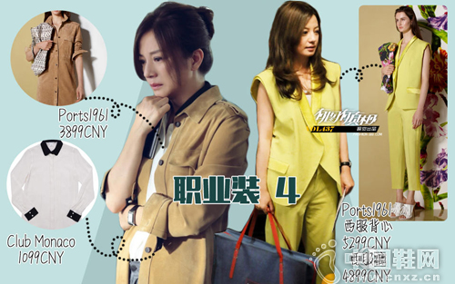 女强人的衣柜里怎么能少一套西服套装呢。令人意想不到的是,赵薇没有选择西服老大Armani出镜,套装依然来自ports1961。颜色艳丽的明黄色是比较难驾驭的颜色,更别提是一身黄了,身材不好气场不强大都会不小心变成一个大大的黄柠檬,好在减完肥的赵薇hold住了。另外一身衬衫搭衬衫的穿法也是过于时尚的装扮,小编奉劝屏幕前的工作狂们要小心尝试,不然可能会有会变成短脖子的风险。所以机智的赵薇想这么穿也一定要把头发束起来,拉长颈部线条。