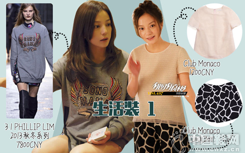 在职场上,赵薇会选择笔挺的西服套装作为基本选择,然而在家里,休闲服则成了她的心头好。简单的灰色卫衣却也是出自3.1Phillip lim的秋冬系列,售价高昂自然是肯定的,而赵薇却把这件时尚时尚最时尚的出街装当作在家里晃悠的居家服也是蛮有钱的。不过她在生活中最钟爱的还是较为平民价格的英伦品牌club monaco。这个近两年才引进国内的品牌其实早就是国外白领的工作首选,衣服简单但富有设计感,穿在身上干净又彰显出独特魅力,当然也不排除是因为赵薇在演绎的原因。
