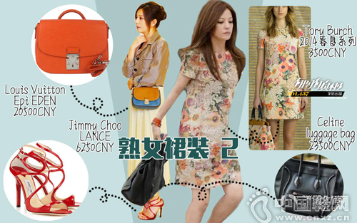 天天打牌傍身的赵薇怎么能没一款louis Vuitton的包呢。低调的她自然不会选择烂大街的高街款,这款水波纹的Eden系列有多种配色,而赵薇身上这个黄蓝撞色则是比较少见的。身穿Marc Jacobs白色百褶长裙搭配同品牌的印花外套,简洁不失格调。只不过再配上一双红色的高跟凉鞋有点颜色过于繁琐了,即使这双jimmy Choo是这一季的主打款。第二身tory burch的印花连衣裙价格还相对比较平民一些了,再加上是老款,现在也一定打折了。不过手上再拎着Celine永不过时的luggage款,马上就不同了,不过包包颜色再艳丽一点就更青春了。 (中国鞋网-最权威最专业的鞋业资讯中心。合作媒体:)