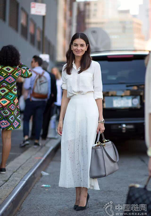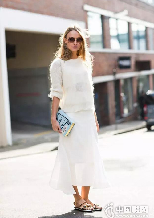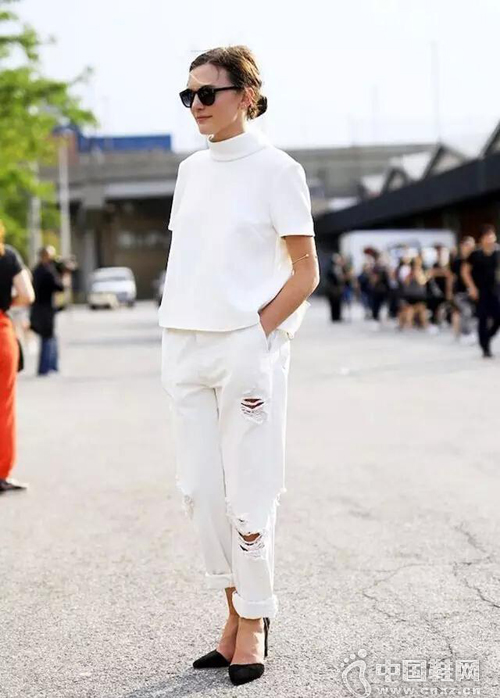 要说今年夏天最HOT的颜色是什么?白色look绝对潮到爆!全白造型亮眼又够chic,搭配亮色系单品非常抢眼!一起来看街头的时尚潮人们演绎百变纯白fashion icon! (中国鞋网-最权威最专业的鞋业资讯中心。合作媒体:)