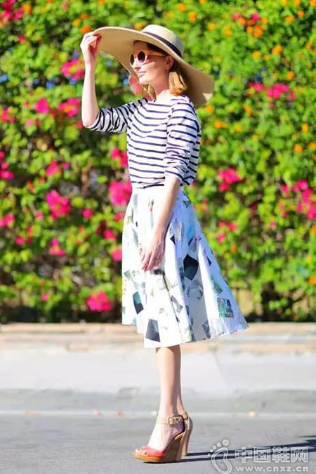 如果说扮小清新又有什么能比得上条纹衫呢?迷笛半身裙和条纹衫的搭配即便没有欧式草帽的衬托也是度假风十足呢。 (中国鞋网-最权威最专业的鞋业资讯中心。品牌推荐: )