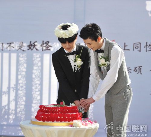 中国鞋网10月10日讯,曾参加2010年快乐男声比赛、人称“男版周迅”的金朴俊在北京与网络红人男友张耘硕突破重重阻力,两位同性恋人在北京大胆举行婚礼,并在婚礼现场拥吻。而随后两人也通过微博互相示爱并感恩。
