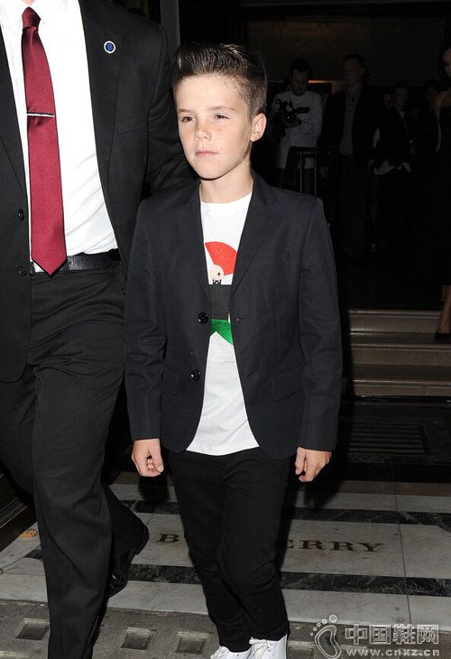 维多利亚穿抹胸黑裙现身 两儿子穿着帅气
