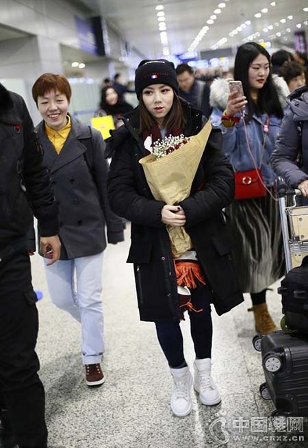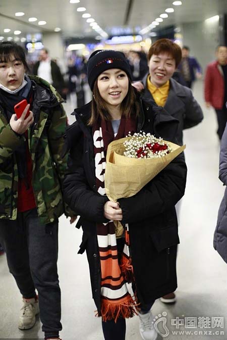 近日邓紫棋现身上海机场,黑色羽绒服搭配小白鞋保暖又有型,头上的针织帽显得可爱十足,她一路与粉丝畅聊还获赠鲜花,穿衣是有进步的~