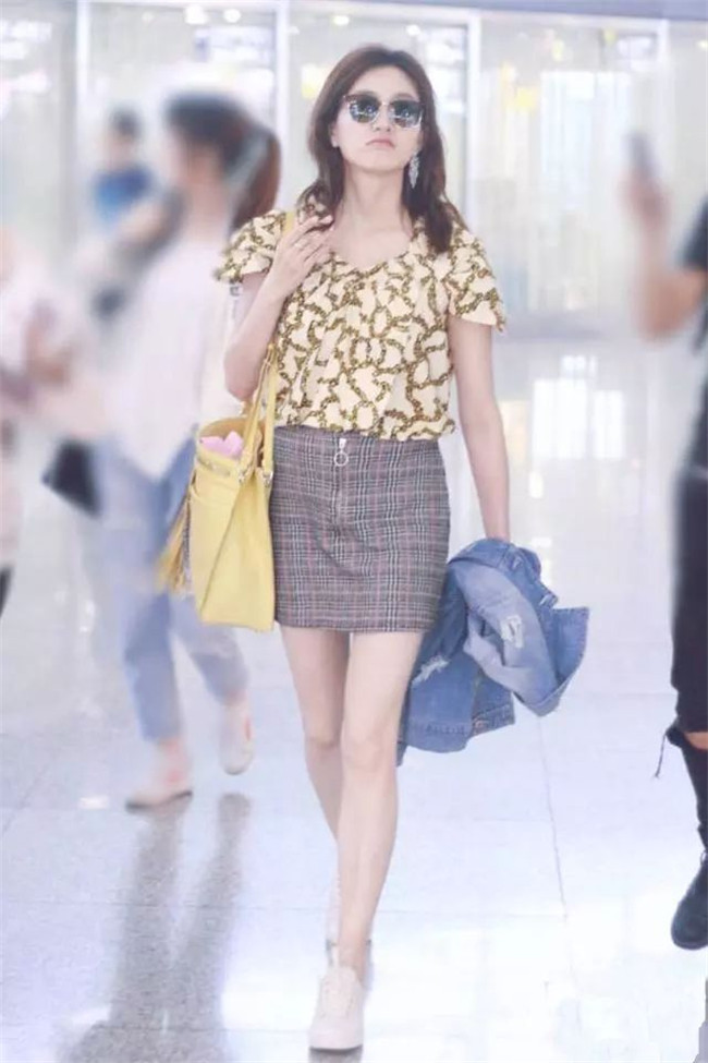 江疏影就是这么傲娇,毕竟她有一双大长腿啊,怎么穿搭都是美美的,碎花衫搭格子半身裙,露出美腿很有魅力。