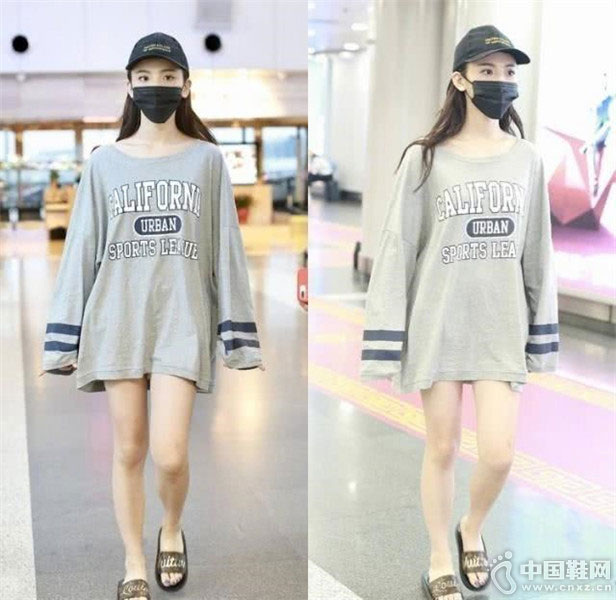 但是她 的这身穿搭就让我非常的不懂了,很多的人都说这件灰色的长袖T恤就像睡衣一样,主要是她的脚上还穿着一双拖鞋,这不仅不像是出门的穿搭,这么随性的搭配她竟然还穿了走机场,这是受不了,但我觉得其实她这样穿随性休闲,还穿出1米8大长腿的既视感~