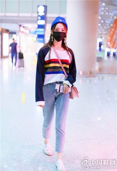 在看了杨超越上面的穿搭,再看看这套就很不错了,条纹相间的T恤搭配一条蓝色的牛仔裤,简约却非常的休闲个性,再穿上一双小白鞋,戴顶小帽子,是不是觉得特别的可爱呢?她的这身穿搭非常的适合小个子的女生,如果你也是不算高的女生 那么紫妖建议你可以借鉴杨超越的这种穿法,身高不够就让自己用可爱的一面来战胜别人的性感吧~