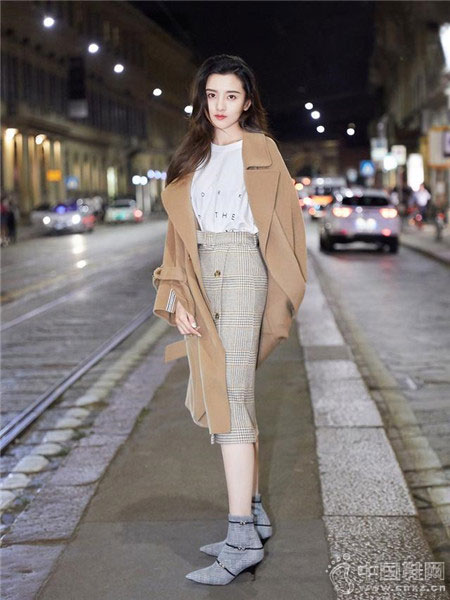 在略微寒冷的夜晚街头,宋祖儿内里以白色T恤衫打底,在披上驼色呢大衣,下身一条卡其色的格子半裙,时髦中不失优雅,平添出几分女人味。过膝长度的大衣不挑身材,H型的版型简约大方,还自带显瘦显高的视觉效果。