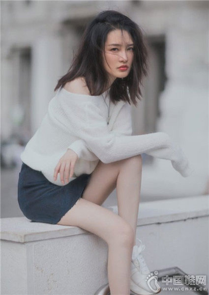 李沁将秀发故意抓乱,颇有几分洒脱不羁的感觉,白色针织毛衣小露香肩,性感撩人,搭配黑色超短裙和白色厚底运动鞋,一双白皙美腿尽在眼前。