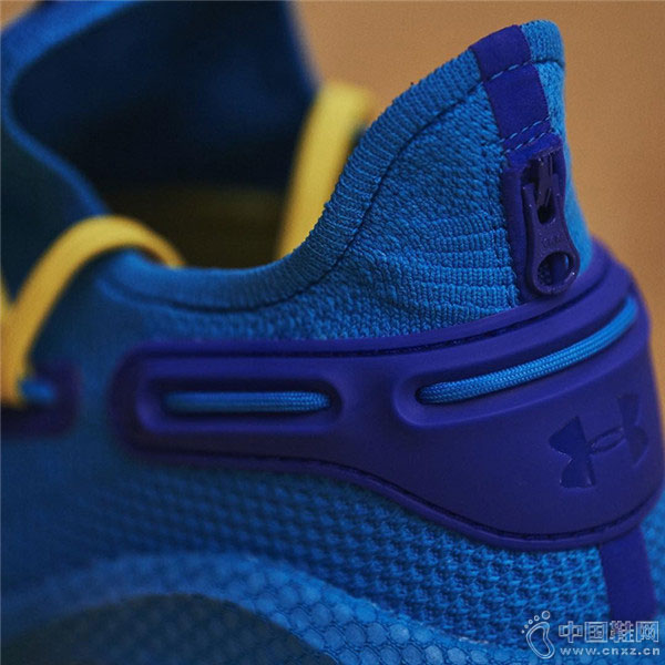 以最新战靴 Curry 6 为蓝本,鞋身采用蓝、黄撞色示人,后跟特别追加拉链设计,还原夹克主题。