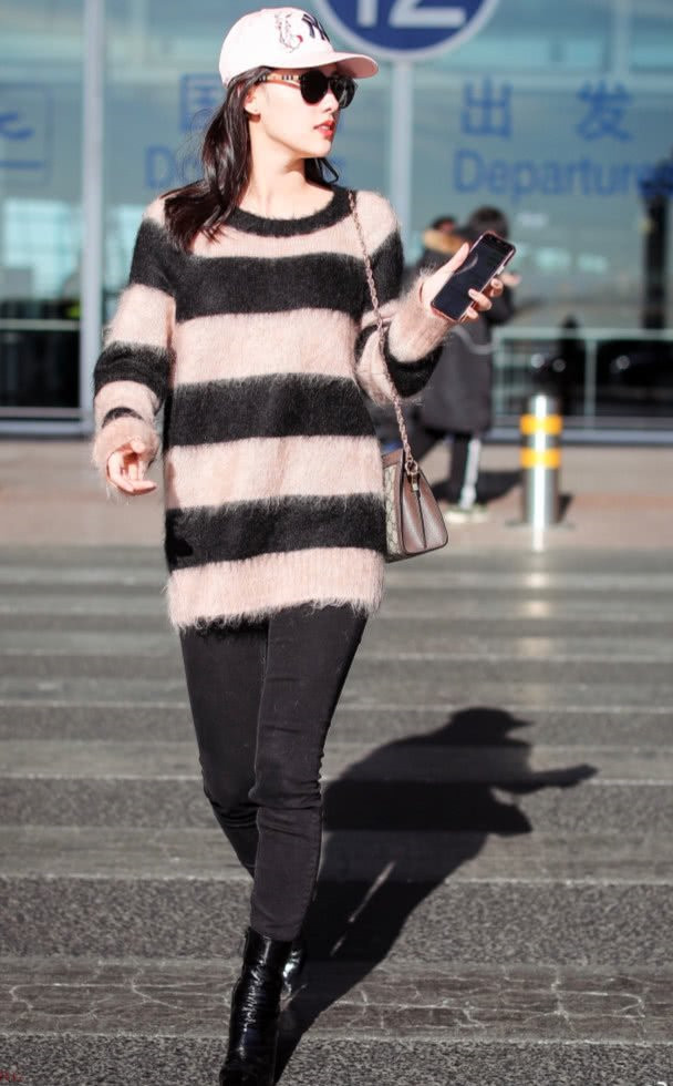 张嘉倪身穿一件粉色的毛衣,有黑色,第一眼看上去,挺美的,因为粉色和红色放在一起,会有时尚感,还有慵懒的版型,更能展现出舒适感。黑色的长裤,搭配同色系的短靴,很好看!