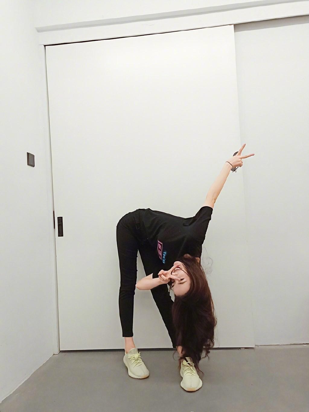 热巴更是搞怪的弯下腰摆出拍照pose,真的是太活泼俏皮了。