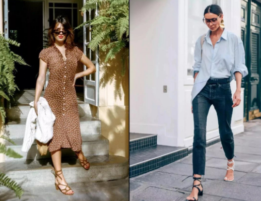 绑带凉鞋虽然看上去好像让脚受苦了,其实并没有,绑带凉鞋非常精致,不仅能在极大程度上展现脚部的精致,还能最大限度地放松脚部,其实没有太多的束缚感。绑带凉鞋在穿的时候,最好是选择与裙子或者是裤子相同的颜色,这样看上去更统一一些,或者是选择两只脚不一样的颜色,这样看上去更潇洒不羁,还有一丝性感的异域风情,甚至养眼。