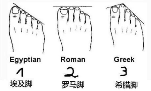脚型大多分为三大类,一种叫埃及脚,就是五根脚指头从大脚趾到小脚趾的长度递减,是非常好看的脚型。第二种叫罗马脚,就是前三根或者四根脚指头几乎一样长,是种很适合跳芭蕾舞的脚型。第三种叫希腊脚,就是第二根脚指头要比其他脚趾头长,这类脚型的人,一般身材都比较高挑。那小仙女们都是什么脚型呢?