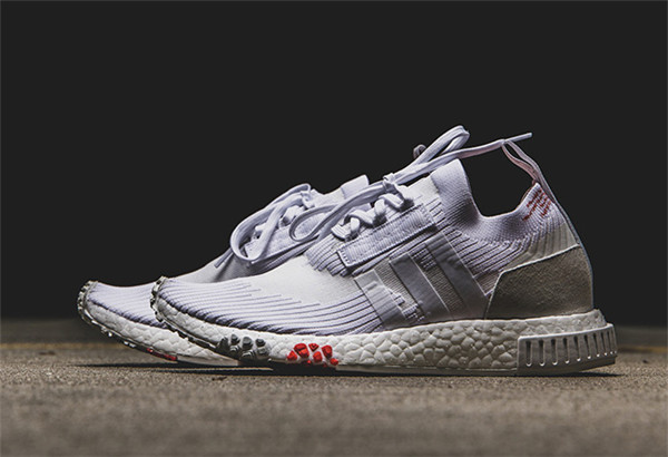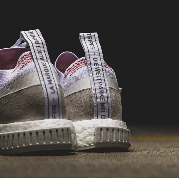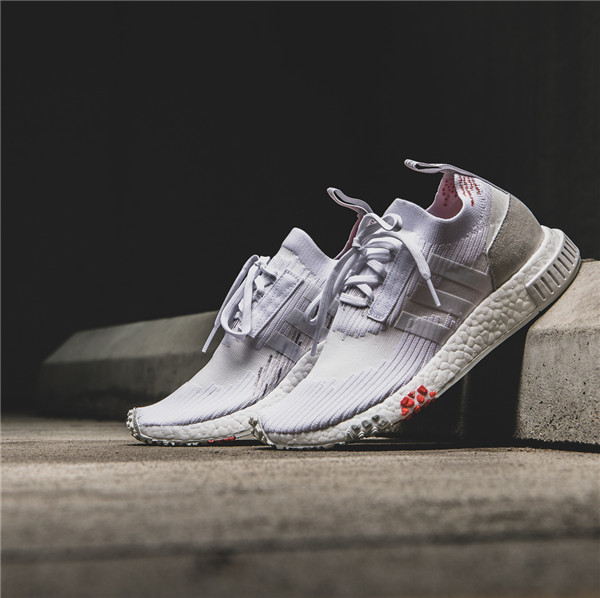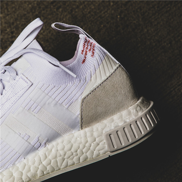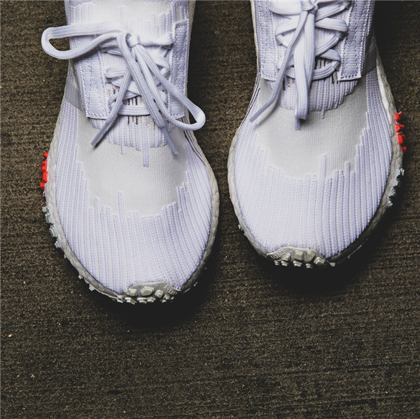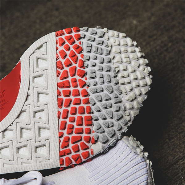 鞋款整体以白色为主调,Primeknit 编织鞋面搭载全掌 Boost 缓震中底,NMD 中底处标志性的稳定模块改头换面,鞋身轮廓造型干练帅气,外底则层次感十足,细节设计颇为走心。