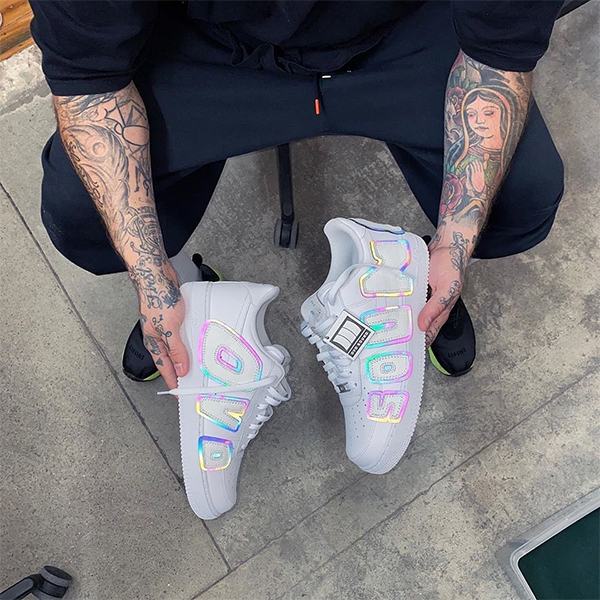 【-时尚搭配】球鞋客制团队 The Shoe Surgeon 一直与 Drake 保持着良好的关系,早先就曾为他打造过一款「Stone Island」Air Jordan XII。而近期迎来 Drake 的 33 岁生日,其再次送出礼物,以 Air Force 1 为基础,仿照 Cactus Plant Flea Market 设计在左右脚鞋身侧面加上了「OVO」和「SOUND」字样,并且融入彩虹反光效果,实属是「排面」的最好象征了…