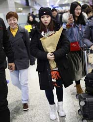近日邓紫棋现身上海机场,黑色羽绒服搭配小白鞋保暖又有型,头上的针织帽显得可爱十足,她一路与粉丝畅聊还获赠鲜花,穿衣是有进步的~更多精彩内容,欢迎扫描下方二维码关注官方微信!... -