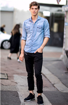 8月24日讯,如何解决早晚温差大的穿衣问题,相比是每位男士都十分关心的问题。不妨可以入手一件经典又好搭的牛仔衬衫,直接单穿,或是当做外套都是不错的搭配方法。快来看看型男们的穿搭示范。更多精彩内容,欢迎扫描下方二维码关注中国鞋网官方微信!... -
