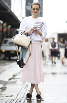 6月14日讯,最近,迷你裙和长裙几乎是平分春色,飘逸的长裙稍多一点文艺温柔气息,而时尚达人更爱以透薄纱裙酿出婆娑美态。她们推翻了“长裙等于保守”的公式,大胆穿起极为透视的纱裙横行街头。透薄纱裙更不只一种穿法,原来衬搭牛仔裤也是充满个性,亦可尝试不同程度的透薄质料,在高调与含蓄之间... -