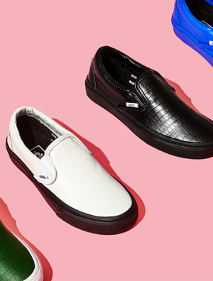 中国鞋网4月20日讯,美国时尚名所OpeningCeremony今季再度携手滑板品牌Vans,共同带来全新2015春夏ClassicSlip-On联名系列。双方此次合作选择以经典便鞋设计Slip-On为蓝本出发,并分别运用黑色、白色、蓝色、绿色压纹皮革构成鞋身,辅以后跟的OCLogo表明特殊身份,最后搭载标志性橡胶鞋底呈现,为原... -
