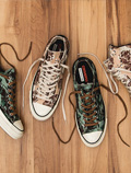 中国鞋网2月6日讯,Converse旗下高端系列FirstString今季再度回归,并为ChuckTaylorAllStar’70带来全新「Floral」系列。当中涵盖了高筒和低筒两个版本,设计上分别将玫瑰花卉印花,与虎纹迷彩和沙漠迷彩相结合,加印于帆布鞋面之上,营造别样街头氛围。全新ConverseFirstString「Floral」系列现已... -