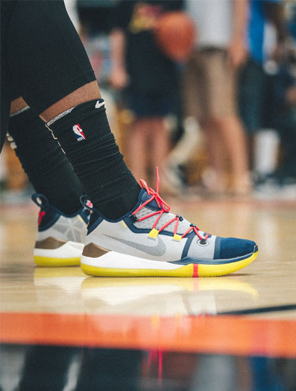 08月13日讯,期待已久的Kobe最新一代战靴今日首次亮相! 众所周知DeMarDeRozan是科比战靴的忠实簇拥,休赛期在德鲁联赛征战的他,自然一如既往穿着Kobe系列比赛。今天脚上的球鞋不同以往,经德鲁联赛官方twitter表示,这将是最新一代KobeA.D.战靴的赛场首秀! 鞋身采用灰、蓝撞色呈现,细节辅以黄、... -