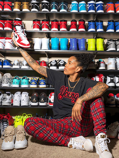 08月20日讯,P.J.塔克毫无疑问是NBA鞋王,那么WNBA的女篮球员是否也有这样狂热的鞋头呢?LasVegasAces队的TameraYoung就是这样一位女鞋头,同样拥有超多球鞋收藏,堪称WNBA女鞋王! 和大家一样,AirJordan1也是TameraYoung最喜欢的鞋款,同时AirJordan8也在她心中有特殊地位,最喜欢的是“水鬼”配色。... -