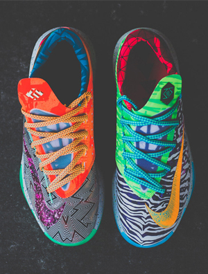 中国鞋网6月12日讯,Nike今季数度推出「WhatThe」系列鞋款,继早前看过LeBron11的「WhatThe」配色之后,这次就为大家送上「WhatTheKD」的KDVI给各位欣赏。由Nike图案设计师ErickGoto设计的「WhatThe」图案融合了不同年代球鞋的多种元素,而这次推出的「WhatTheKD」就融合了过往超过30多种版本KD鞋款... -