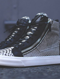 中国鞋网4月14日讯,一向保持高调奢华风格的设计师GiuseppeZanotti最近为其同名鞋履品牌和知名店铺Kith打造了一款Kith独占蛇纹高筒鞋款。整个鞋身以奢华的蛇皮覆盖,穿孔的位置配以黑色的皮革以及Zanotti标志性的斜拉链;最后再搭配上黑色的鞋带以及全白的橡胶大底组合而成。(合作媒体:)... -
