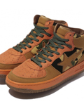 中国鞋网1月15日讯,ABATHINGAPE最为拿手的经典鞋款之一BAPESTA近日释出一款以承载有鲜明军事风格为主体的全新作品——1STCAMOBAPESTAMID。以中筒式样为呈现,并且鞋身以大地色系搭配浅绿色呈现,别具军事感,而ABATHINGAPE经典迷彩元素的加持令鞋履的皮革混搭感更为新鲜,可以说是众猿迷没有理由拒... -