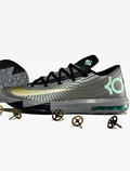 中国鞋网11月28日讯,继上次刚刚发表「MarylandBlueCrab」配色的KDVI后,日前该款KevinDurant的签名球鞋迎来了最新的「PrecisionTiming」配色。以腕表的零件和制作工艺作为灵感,新配色主要采用金色和银色作为主打色调,并加入类似腕表齿轮的条纹贯穿鞋身,另外搭载薄荷绿色的KDlogo以及银色和黑色... -