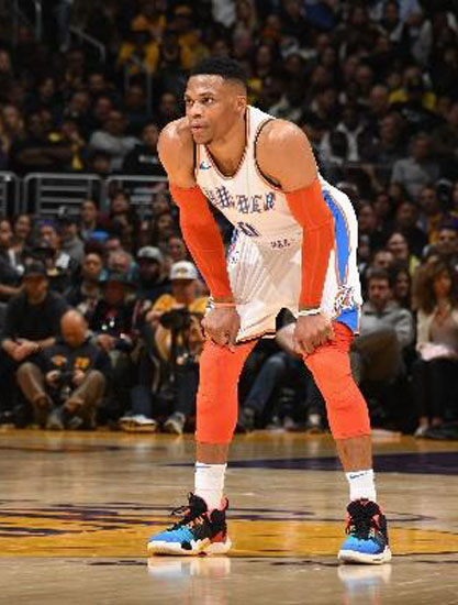 -01月04日讯,昨日,俄克拉荷马雷霆客场挑战洛杉矶湖人队。保罗·乔治发挥出色,独砍37分,帮助雷霆107-100逆转击败湖人,稳住自己西部第三的位置。虽然威少拿到14分16篮板10助攻的三双数据,但全场20投仅3中,状态依然低迷。威少的场上表现,显然不及他脚下的新鞋来得抢眼——同在这一天,篮球巨头Jor... -