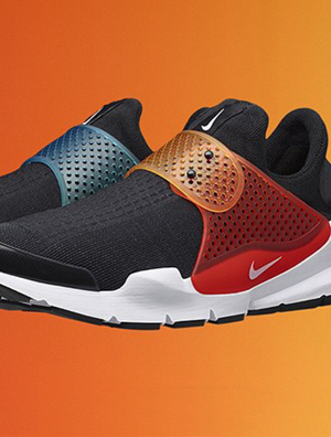 中国鞋网6月29日讯,随著最高法院宣布同性恋婚姻在全美50大州合法,使得美国成为全球第21个承认同性婚姻的国家,为纪念这一同性恋维权史上的里程碑时刻,Nike也正式发布了早前曾引起热议的#BETRUESockDart别注配色。设计上以LGBT同性恋社群招牌式的彩虹元素为灵感发想,在由黑色针织网料构成的鞋身... -